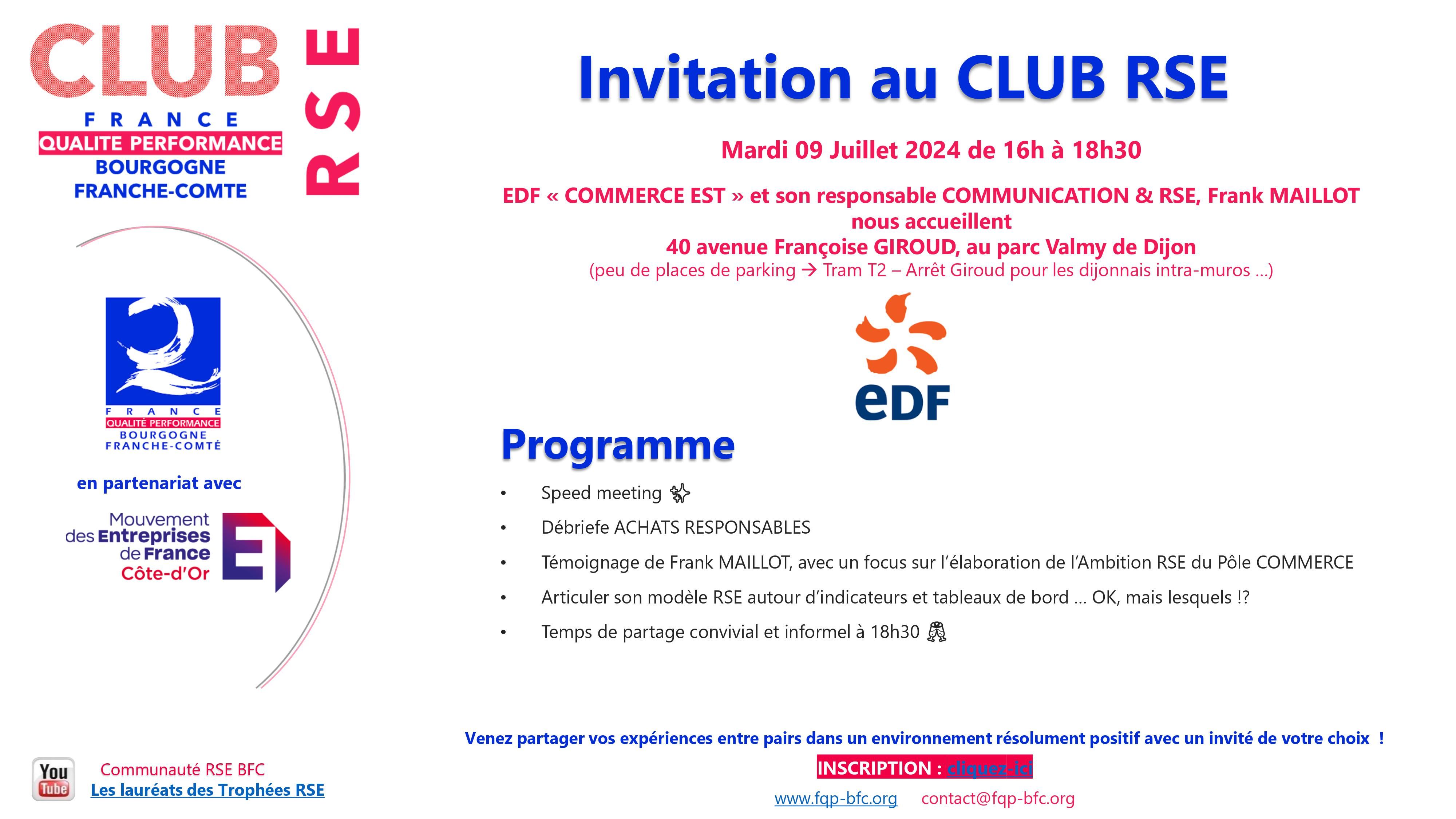 En partenariat avec le MEDEF 21, FQP BFC vous invite au prochain Club RSE