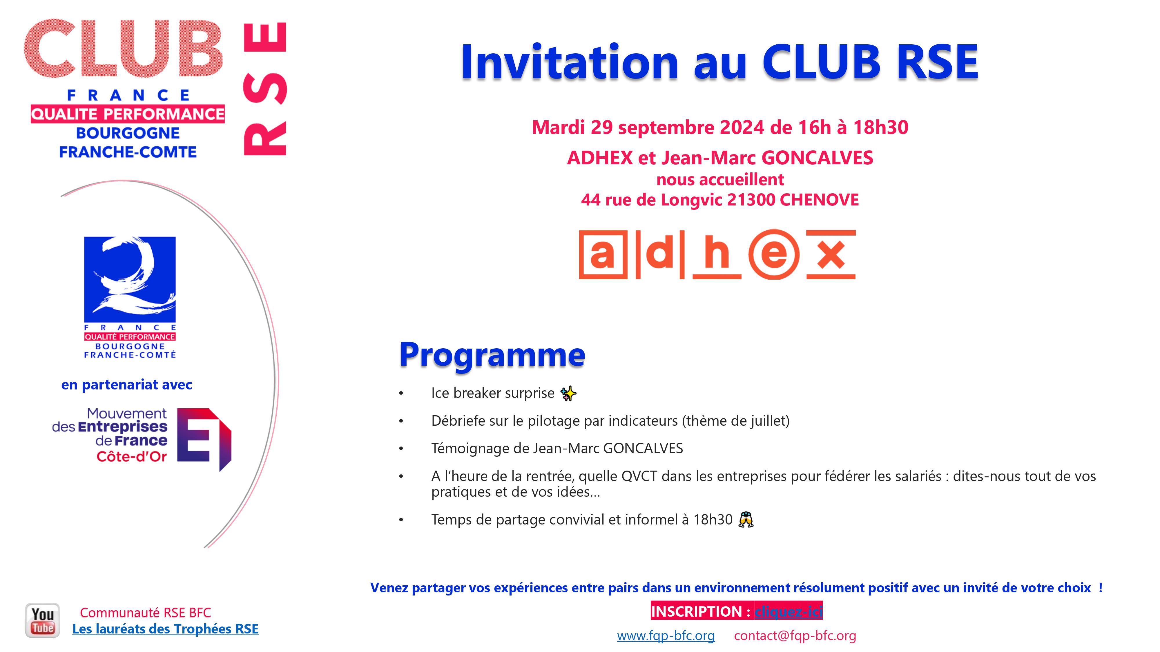 Le Club RSE est réservé aux adhérents FQP BFC mais vous pouvez nous rejoindre pour une première session découverte gratuitement...